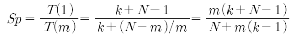 파이프라인이 1개일 때 보다 m개일 때 얼마나 속도가 향상되었는가?