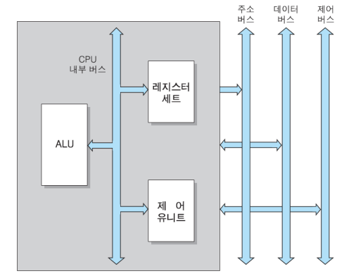 = ALU와 레지스터 간에 데이터 이동을 위한 데이터 선과 제어 유닛으로부터 발생되는 제어신호 선으로 구성된 내부